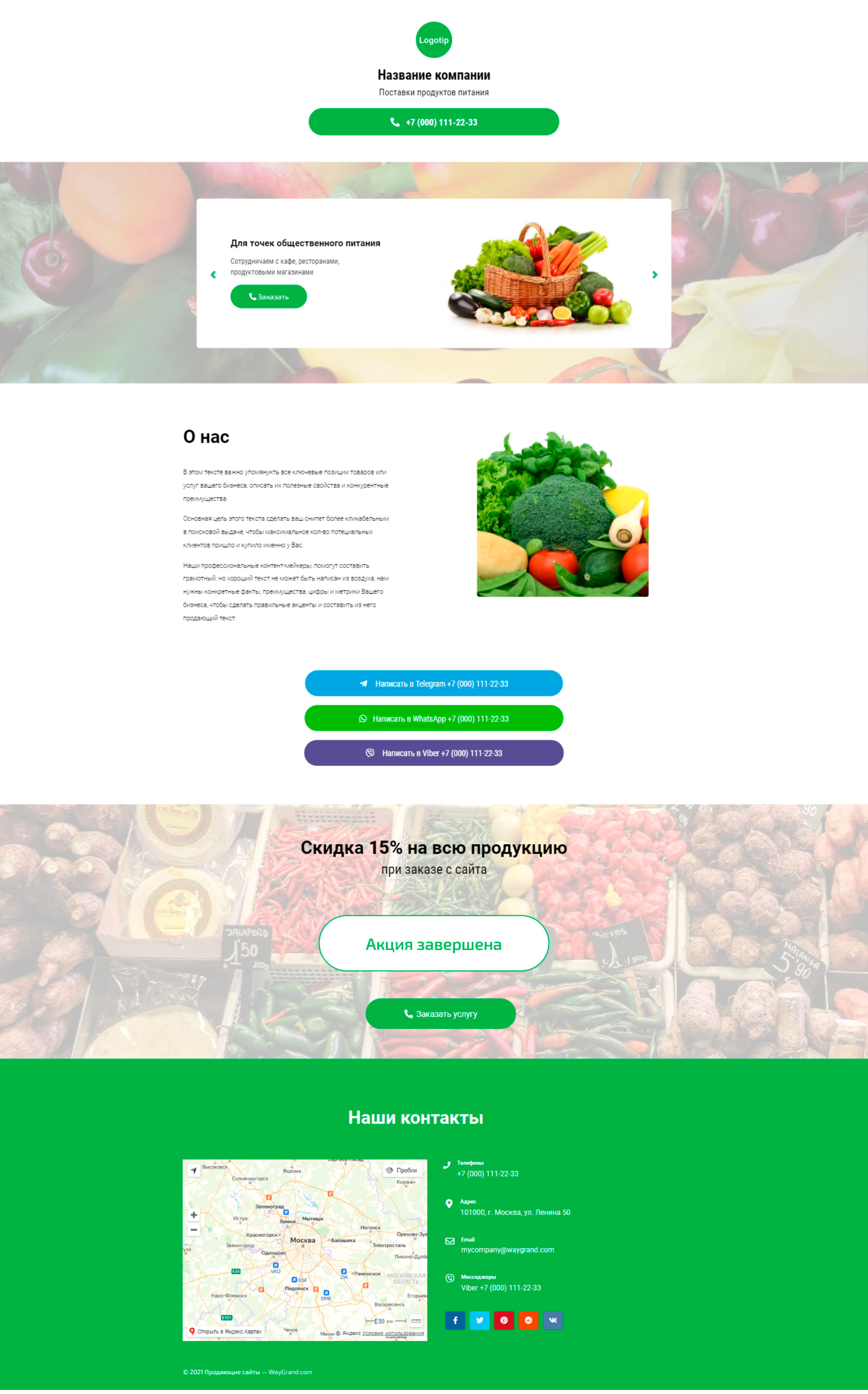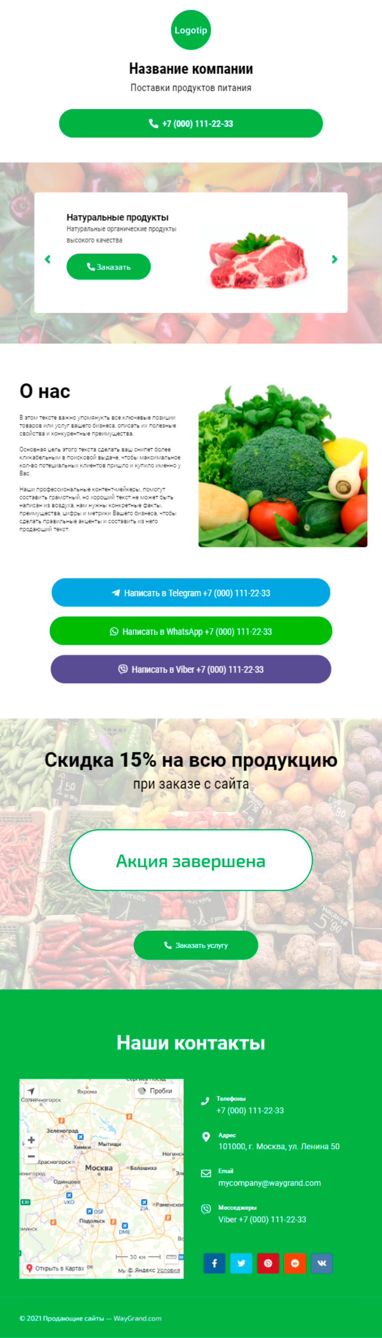 Закажите готовый продающий сайт визитка #1723101 в Новочебоксарске за 5-7 дня «под ключ»: свёрстан, отрисован и готов к рекламе. Тематика шаблона «Поставки продуктов питания».
