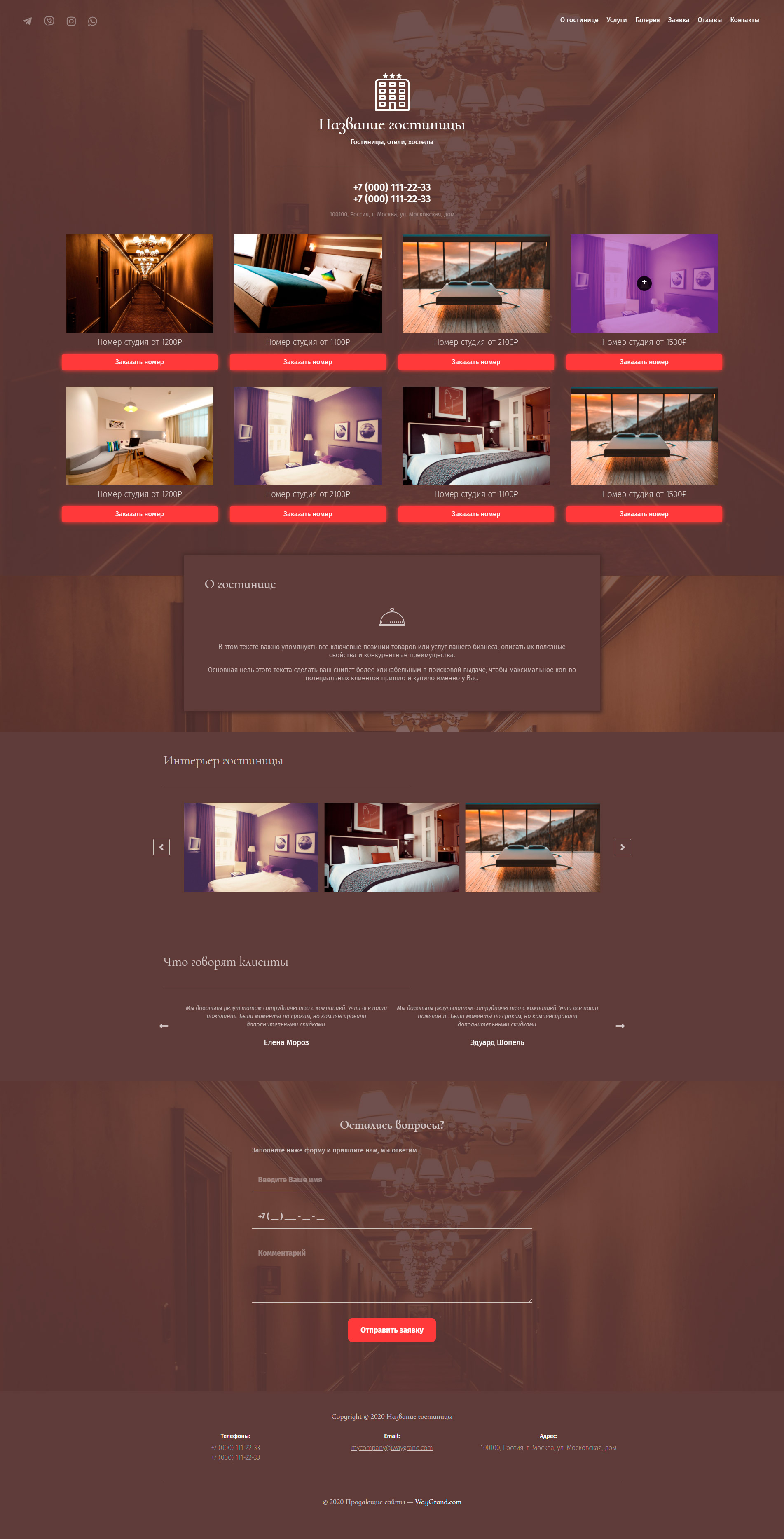Закажите готовый продающий сайт лендинг #1905202 в Новочебоксарске за 1-3 дня «под ключ»: свёрстан, отрисован и готов к рекламе. Тематика шаблона «Гостиница, повышенный комфорт».