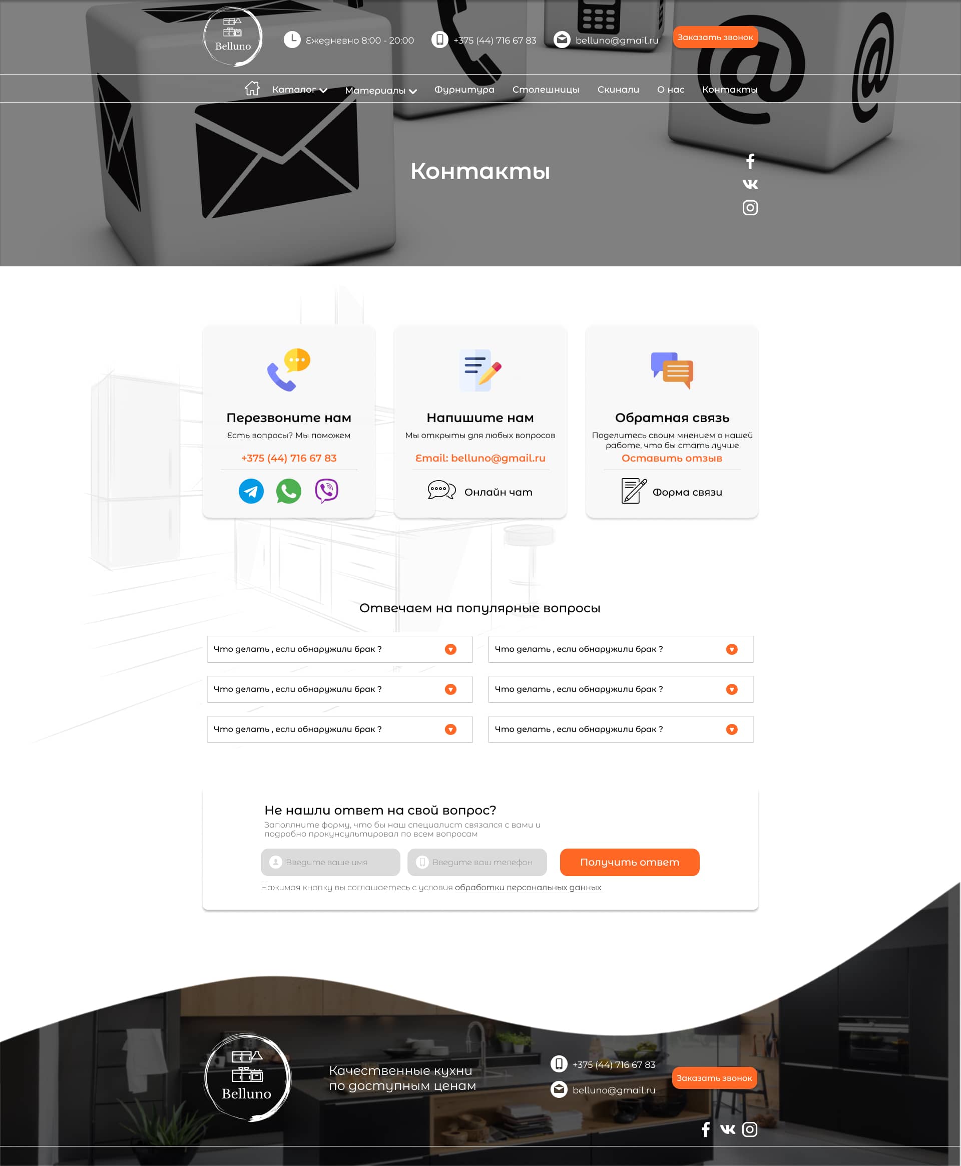 Закажите готовый продающий сайт визитка #282 в Новочебоксарске за 5-7 дня «под ключ»: свёрстан, отрисован и готов к рекламе. Тематика шаблона «Кухни».