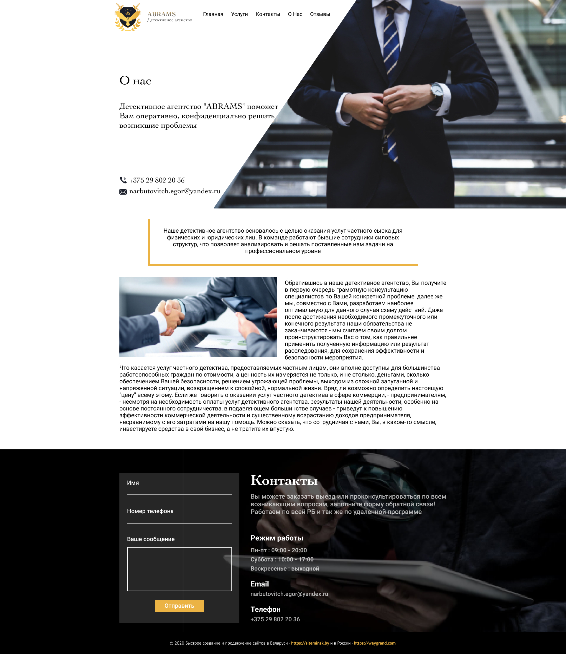 Закажите готовый продающий сайт визитка #239 в Новочебоксарске за 5-7 дня «под ключ»: свёрстан, отрисован и готов к рекламе. Тематика шаблона «Частное детективное агентство».