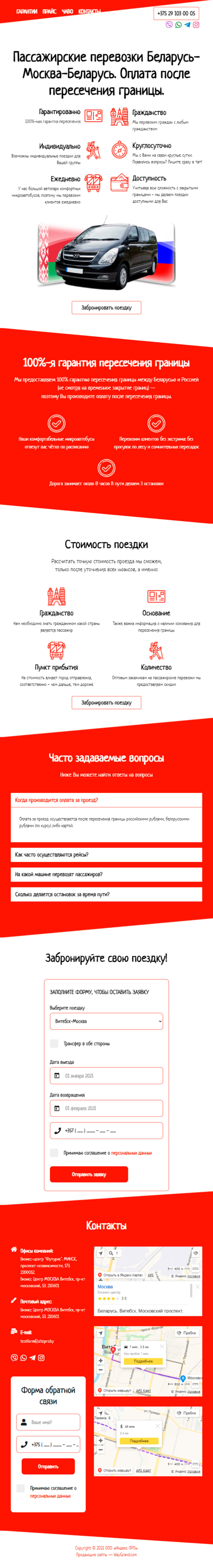 Закажите готовый продающий сайт лендинг #2528201 в Новочебоксарске за 1-3 дня «под ключ»: свёрстан, отрисован и готов к рекламе. Тематика шаблона «Пассажирские перевозки Беларусь-Москва-Беларусь».