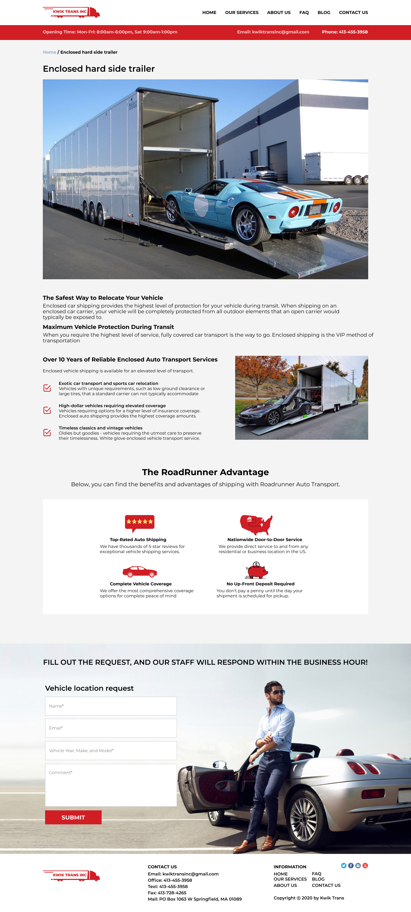 Закажите готовый продающий сайт визитка #223 в Новочебоксарске за 5-7 дня «под ключ»: свёрстан, отрисован и готов к рекламе. Тематика шаблона «Safe & Reliable National Auto Transport».